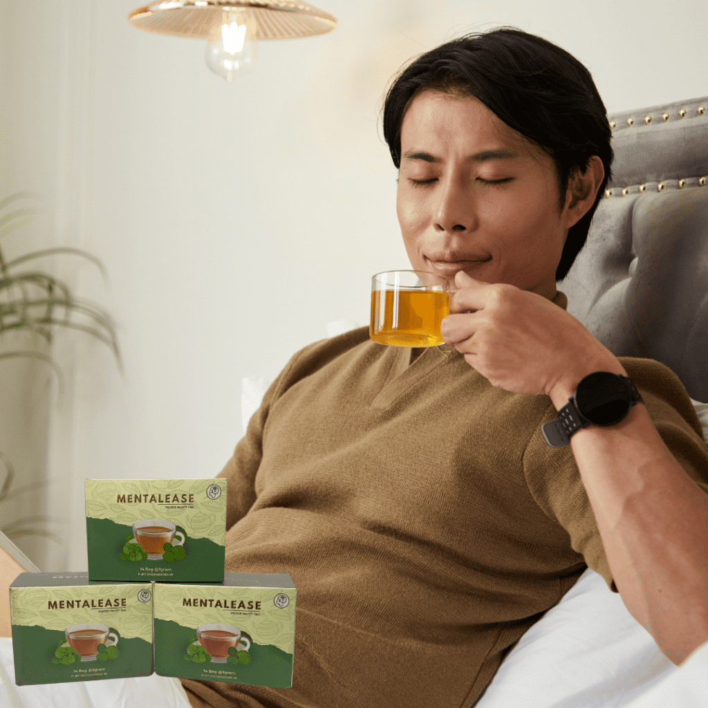 Teh Herbal dengan Formula Alami, bantu menenangkan pikiran, mengurangi kecemasan, dan memperbaiki kualitas tidur, tanpa efek samping.